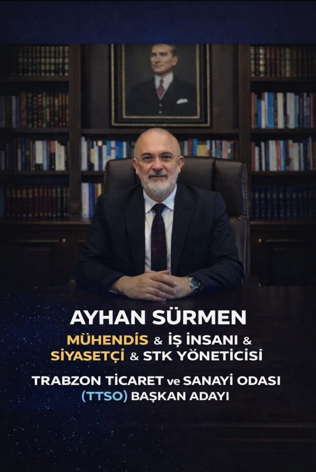 Ayhan Sürmen, ticaret, sanayi ve sivil toplum alanlarında uzun yıllara dayalı deneyimi ile bilinen bir iş insanıdır. Trabzon Ticaret ve Sanayi Odası Başkan Adayı olarak ekonomik kalkınma, ticaretin güçlendirilmesi ve ticari vizyonun ileri taşınması hedefi ile çalışmaktadır.